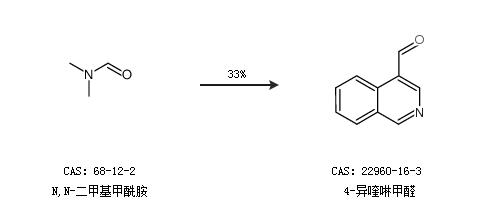 1.通过N,N-二甲基甲酰胺合成4-异喹啉甲醛,收率约33%;