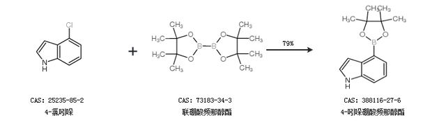 2.通过4-氯吲哚和联硼酸频那醇酯合成4-吲哚硼酸频那醇酯,收率约79%;
