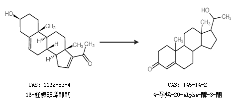 1.通过16-妊娠双烯醇酮合成4-孕烯-20-alpha-醇-3-酮