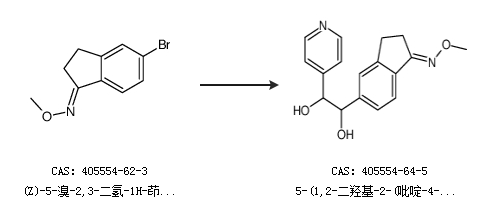 2.通过(Z)-5-溴-2,3-二氢-1H-茚-1-酮 O-甲基 肟合成5-(1,2-二羟基-2-(吡啶-4-基)乙基)-2,3-二氢-1H-茚-1-酮o-甲基肟