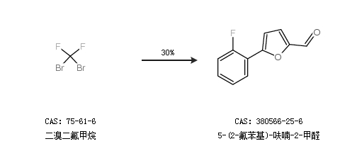 2.通过二溴二氟甲烷合成5-(2-氟苯基)-呋喃-2-甲醛,收率约30%;