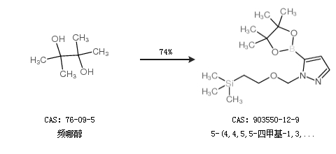 1.通过频哪醇合成5-(4,4,5,5-四甲基-1,3,2-二氧硼烷)-1-[[2-(三甲基甲硅烷基)乙氧基]甲基]-1H-吡唑,收率约74%;