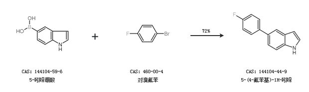 2.通过5-吲哚硼酸和对溴氟苯合成5-(4-氟苯基)-1H-吲哚,收率约72%;