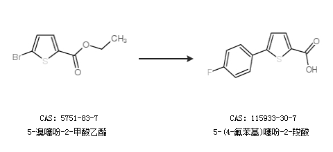 2.通过5-溴噻吩-2-甲酸乙酯合成5-(4-氟苯基)噻吩-2-羧酸