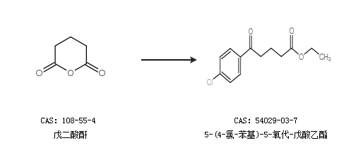 1.通过戊二酸酐合成5-(4-氯-苯基)-5-氧代-戊酸乙酯