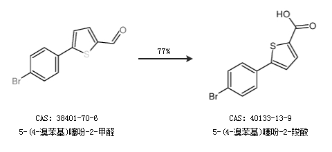 1.通过5-(4-溴苯基)噻吩-2-甲醛合成5-(4-溴苯基)噻吩-2-羧酸,收率约77%;