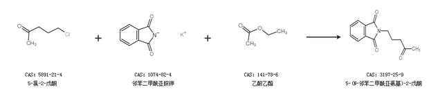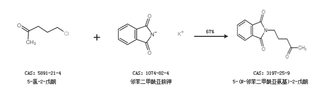 1.通过5-氯-2-戊酮和邻苯二甲酰亚胺钾合成5-(N-邻苯二甲酰亚氨基)-2-戊酮,收率约67%;