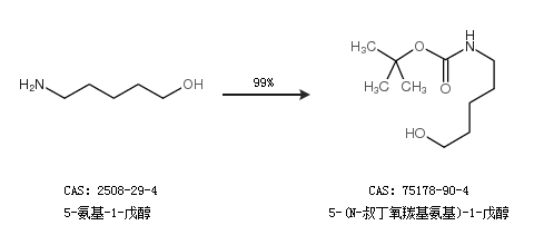 1.通过5-氨基-1-戊醇合成5-(N-叔丁氧羰基氨基)-1-戊醇,收率约99%;