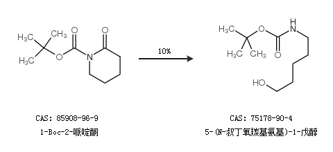 2.通过1-Boc-2-哌啶酮合成5-(N-叔丁氧羰基氨基)-1-戊醇,收率约10%;