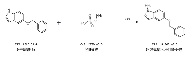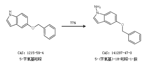 2.通过5-苄氧基吲哚和羟胺磺酸合成5-(苄氧基)-1H-吲哚-1-胺,收率约77%;