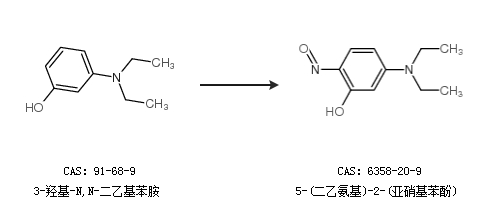英文别名 p-Nitroso-m-hydroxy-N,N-diethylanilin;5-diethylamino-2-nitroso-phenol;1-nitroso-4-N,N-diethylamino-2-phenol;5-N,N-diethyl-2-nitrosophenol;5-Diaethylamino-2-nitroso-phenol;