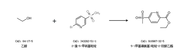 1.通过乙醇和2-溴-5-甲砜基吡啶合成5-(甲基磺酰基)吡啶-2-羧酸乙酯