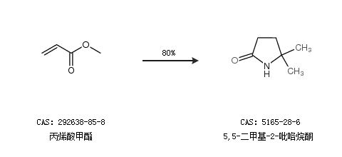 2.通过丙烯酸甲酯合成5,5-二甲基-2-吡咯烷酮,收率约80%;