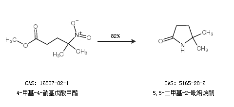 1.通过4-甲基-4-硝基戊酸甲酯合成5,5-二甲基-2-吡咯烷酮,收率约82%;