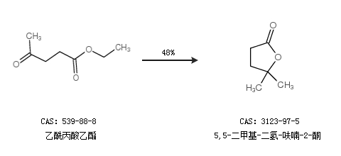 2.通过乙酰丙酸乙酯合成5,5-二甲基-二氢-呋喃-2-酮,收率约48%;
