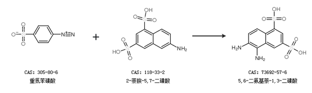 1.通过重氮苯磺酸和2-萘胺-5,7-二磺酸合成5,6-二氨基萘-1,3-二磺酸