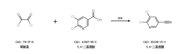 1.通过草酰氯和5,6-二氯烟酸合成5,6-二氯烟腈,收率约26%;