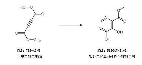 1.通过丁炔二酸二甲酯合成5,6-二羟基-嘧啶-4-羧酸甲酯