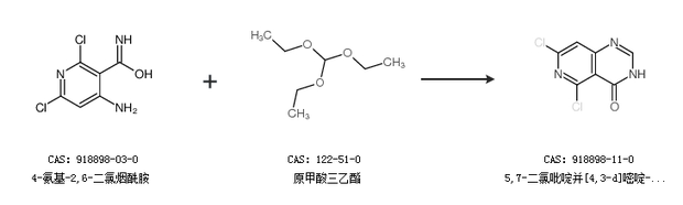 1.通过4-氨基-2,6-二氯烟酰胺和原甲酸三乙酯合成5,7-二氯吡啶并[4,3-d]嘧啶-4(3h)-酮