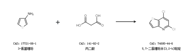 1.通过3-氨基噻吩和丙二酸合成5,7-二氯噻吩并[3,2-b]吡啶