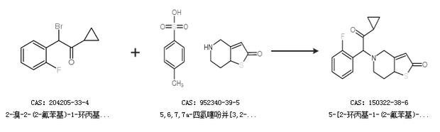 1.通过2-溴-2-(2-氟苯基)-1-环丙基乙酮和5,6,7,7a-四氢噻吩并[3,2-c]吡啶-2(4H)-酮对甲苯磺酸盐合成5-[2-环丙基-1-(2-氟苯基)-2-氧代乙基]-5,6,7,7a-四氢噻吩并[3,2-c]吡啶-2(4H)-酮