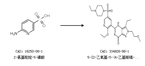2.通过2-氨基吡啶-5-磺酸合成5-[2-乙氧基-5-(4-乙基哌嗪-1-基磺酰基)吡啶-3-基]-3-乙基-2-(2-甲氧基乙基)-2,6-二氢-7H-吡唑并[4,3-d]嘧啶-7-酮
