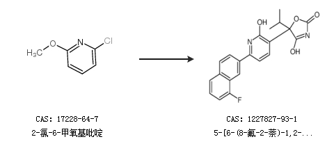 1.通过2-氯-6-甲氧基吡啶合成5-[6-(8-氟-2-萘)-1,2-二氢-2-氧代-3-吡啶]-5-(1-甲基乙基)-2,4-噁唑啉二酮