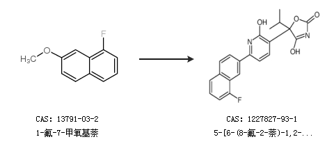 2.通过1-氟-7-甲氧基萘合成5-[6-(8-氟-2-萘)-1,2-二氢-2-氧代-3-吡啶]-5-(1-甲基乙基)-2,4-噁唑啉二酮