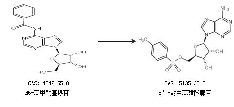 1.通过N6-苯甲酰基腺苷合成5’-对甲苯磺酸腺苷