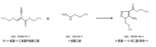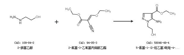 1.通过(E)-2-氰基-3-乙氧基丙烯酸乙酯和2-肼基乙醇合成5-氨基-1-(2-羟乙基)吡唑-4-甲酸乙酯