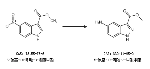 1.通过5-硝基-1H-吲唑-3-羧酸甲酯合成5-氨基-1H-吲唑-3-甲酸甲酯