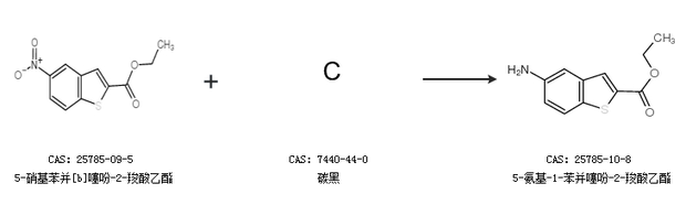 2.通过5-硝基苯并[b]噻吩-2-羧酸乙酯和碳黑合成5-氨基-1-苯并噻吩-2-羧酸乙酯