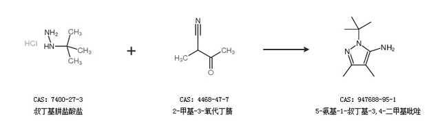 1.通过叔丁基肼盐酸盐和2-甲基-3-氧代丁腈合成5-氨基-1-叔丁基-3,4-二甲基吡唑
