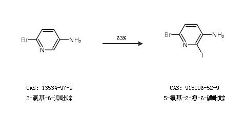 1.通过3-氨基-6-溴吡啶合成5-氨基-2-溴-6-碘吡啶,收率约63%;