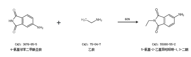 1.通过4-氨基邻苯二甲酰亚胺和乙胺合成5-氨基-2-乙基异吲哚啉-1,3-二酮,收率约60%;