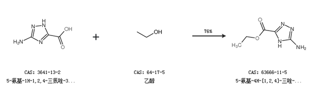 1.通过5-氨基-1H-1,2,4-三氮唑-3-羧酸和乙醇合成5-氨基-4H-[1,2,4]-三唑-3-羧酸甲酯,收率约76%;
