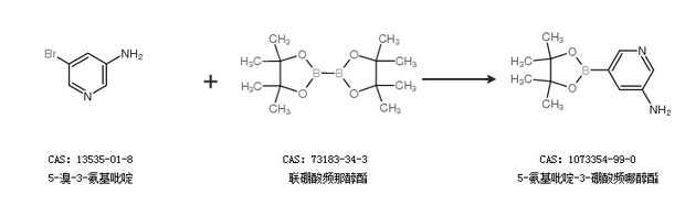 1.通过5-溴-3-氨基吡啶和联硼酸频那醇酯合成5-氨基吡啶-3-硼酸频哪醇酯