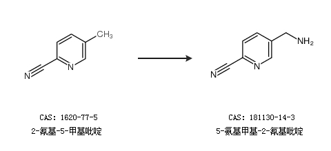 2.通过2-氰基-5-甲基吡啶合成5-氨基甲基-2-氰基吡啶