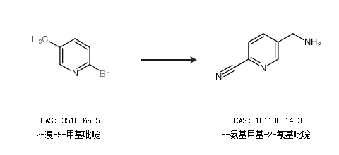 1.通过2-溴-5-甲基吡啶合成5-氨基甲基-2-氰基吡啶