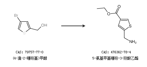 1.通过(4-溴-2-噻吩基)甲醇合成5-氨基甲基噻吩-3-羧酸乙酯