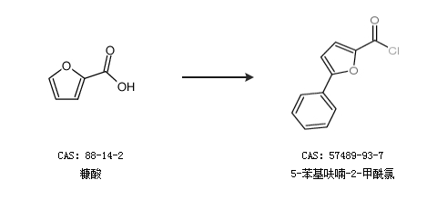 2.通过糠酸合成5-苯基呋喃-2-甲酰氯