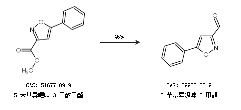 2.通过5-苯基异噁唑-3-甲酸甲酯合成5-苯基异噁唑-3-甲醛,收率约46%;