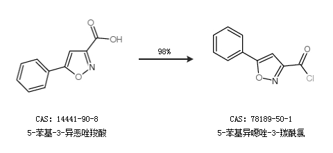 1.通过5-苯基-3-异恶唑羧酸合成5-苯基异噁唑-3-羰酰氯,收率约98%;