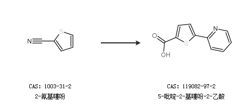 1.通过2-氰基噻吩合成5-吡啶-2-基噻吩-2-乙酸