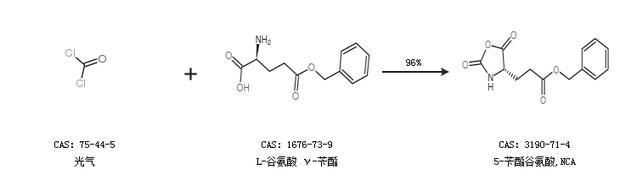 1.通过L-谷氨酸 γ-苄酯合成5-苄酯谷氨酸,NCA,收率约90%;