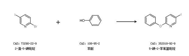 2.通过2-溴-5-碘吡啶和苯酚合成5-碘-2-苯氧基吡啶