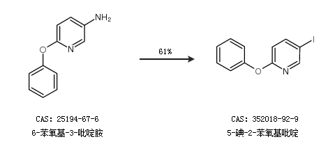 1.通过6-苯氧基-3-吡啶胺合成5-碘-2-苯氧基吡啶,收率约61%;