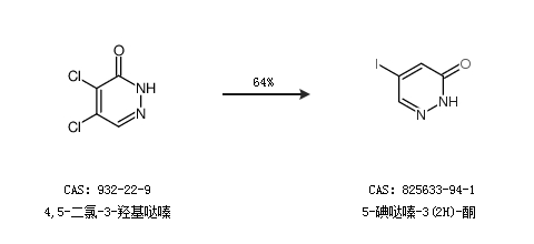 1.通过4,5-二氯-3-羟基哒嗪合成5-碘哒嗪-3(2H)-酮,收率约64%;