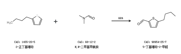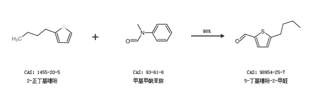 1.通过2-正丁基噻吩和甲基甲酰苯胺合成5-丁基噻吩-2-甲醛,收率约98%;