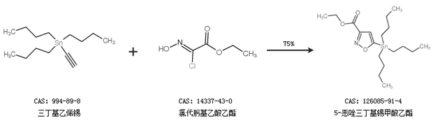 1.通过三丁基乙烯锡和氯代肟基乙酸乙酯合成5-恶唑三丁基锡甲酸乙酯,收率约75%;